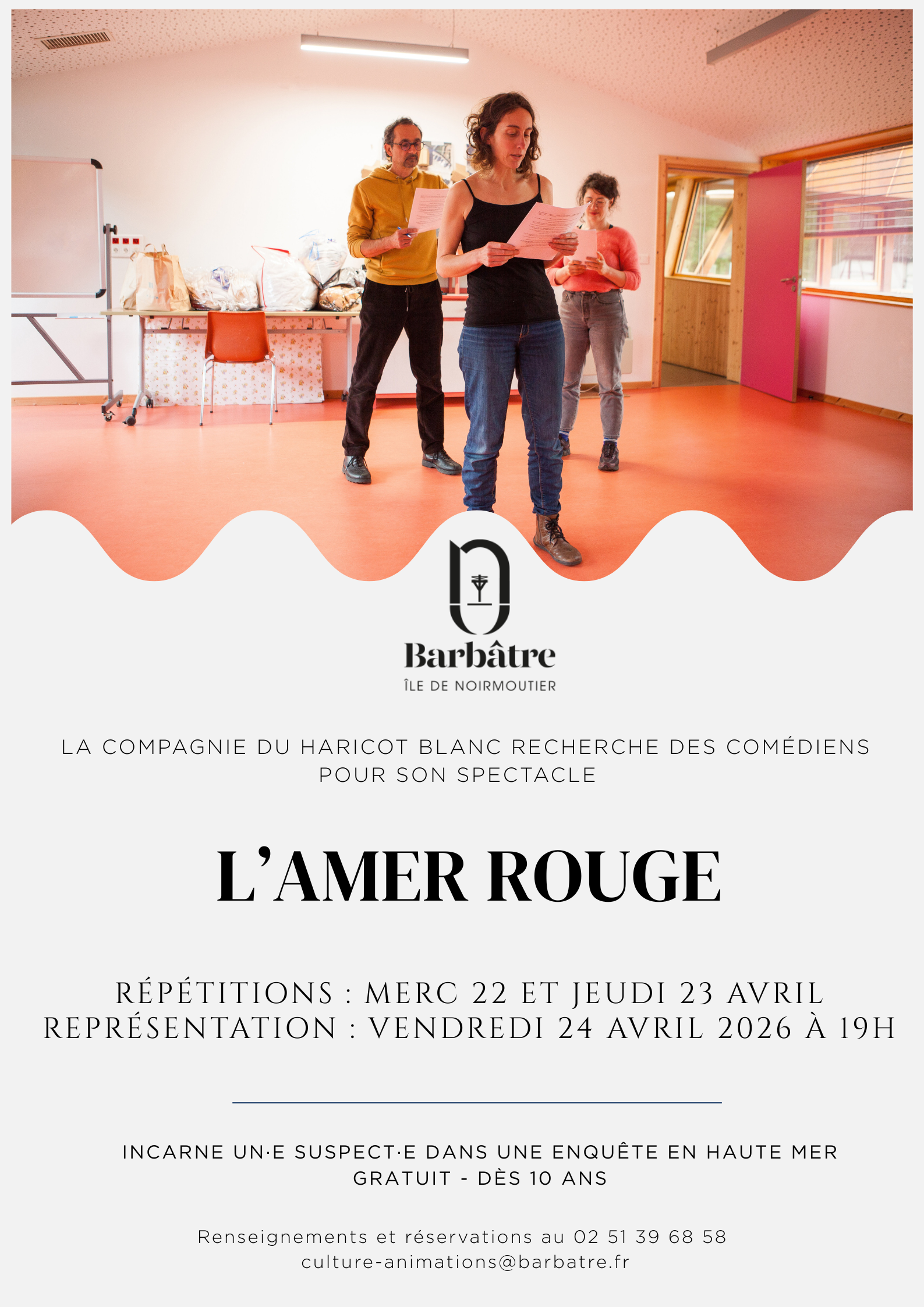 La Cie du Haricot Blanc lance un appel à participation pour son nouveau spectacle immersif “L’Amer Rouge”. À cette occasion, la compagnie recherche des aventurier·es prêt·es à embarquer dans une enquête mystérieuse en haute mer.