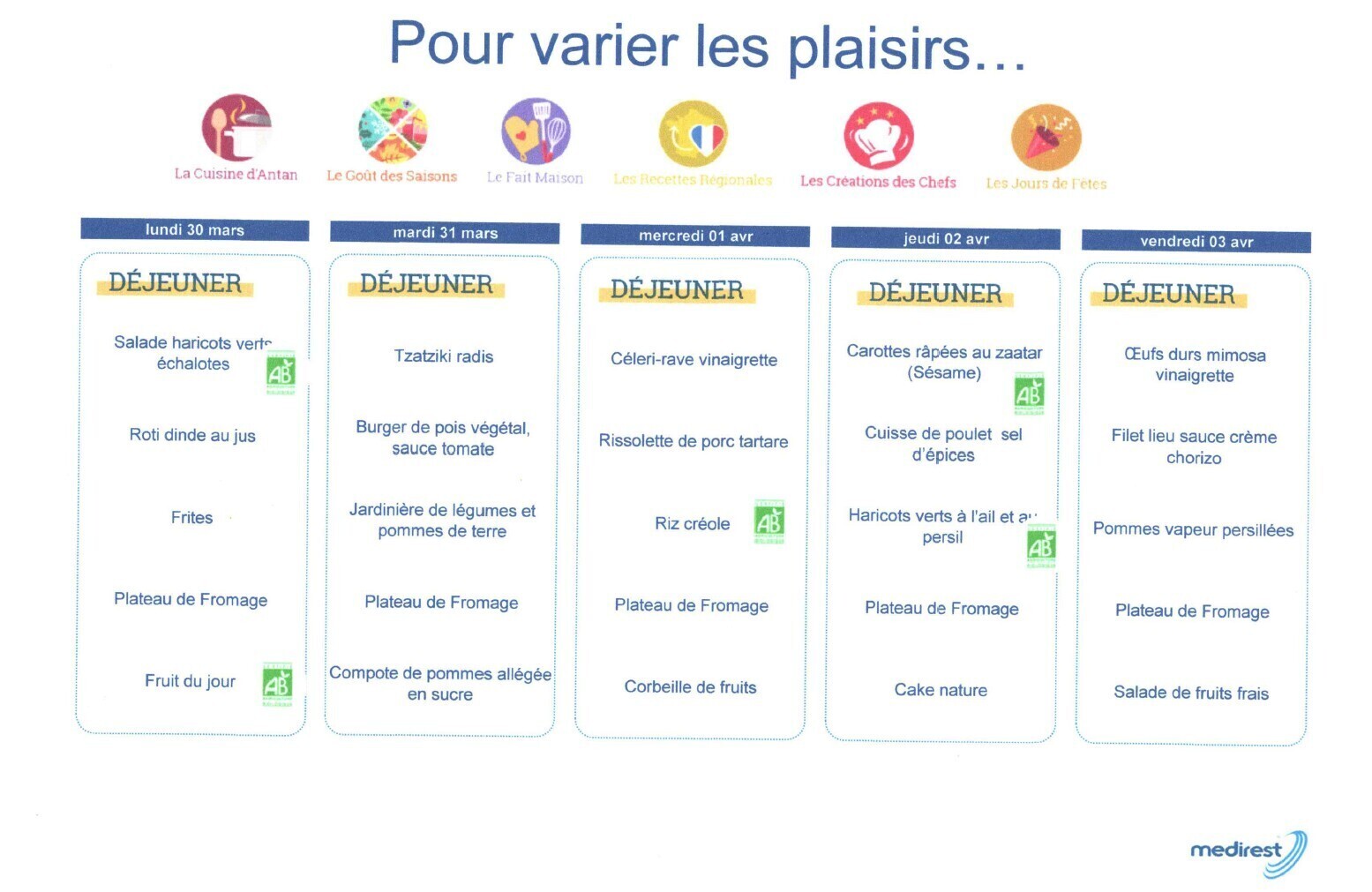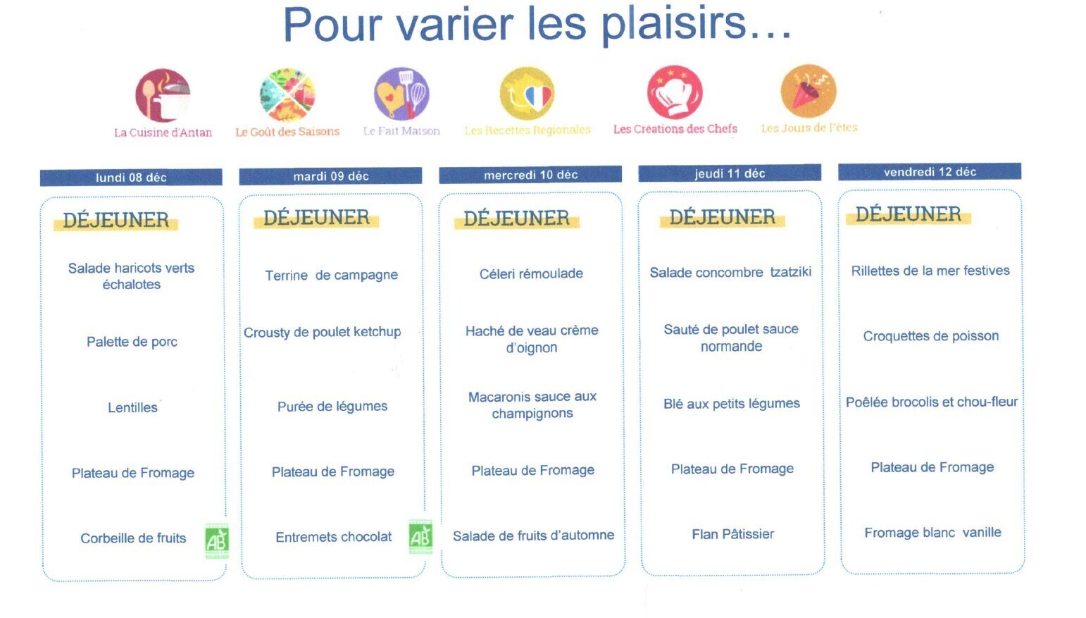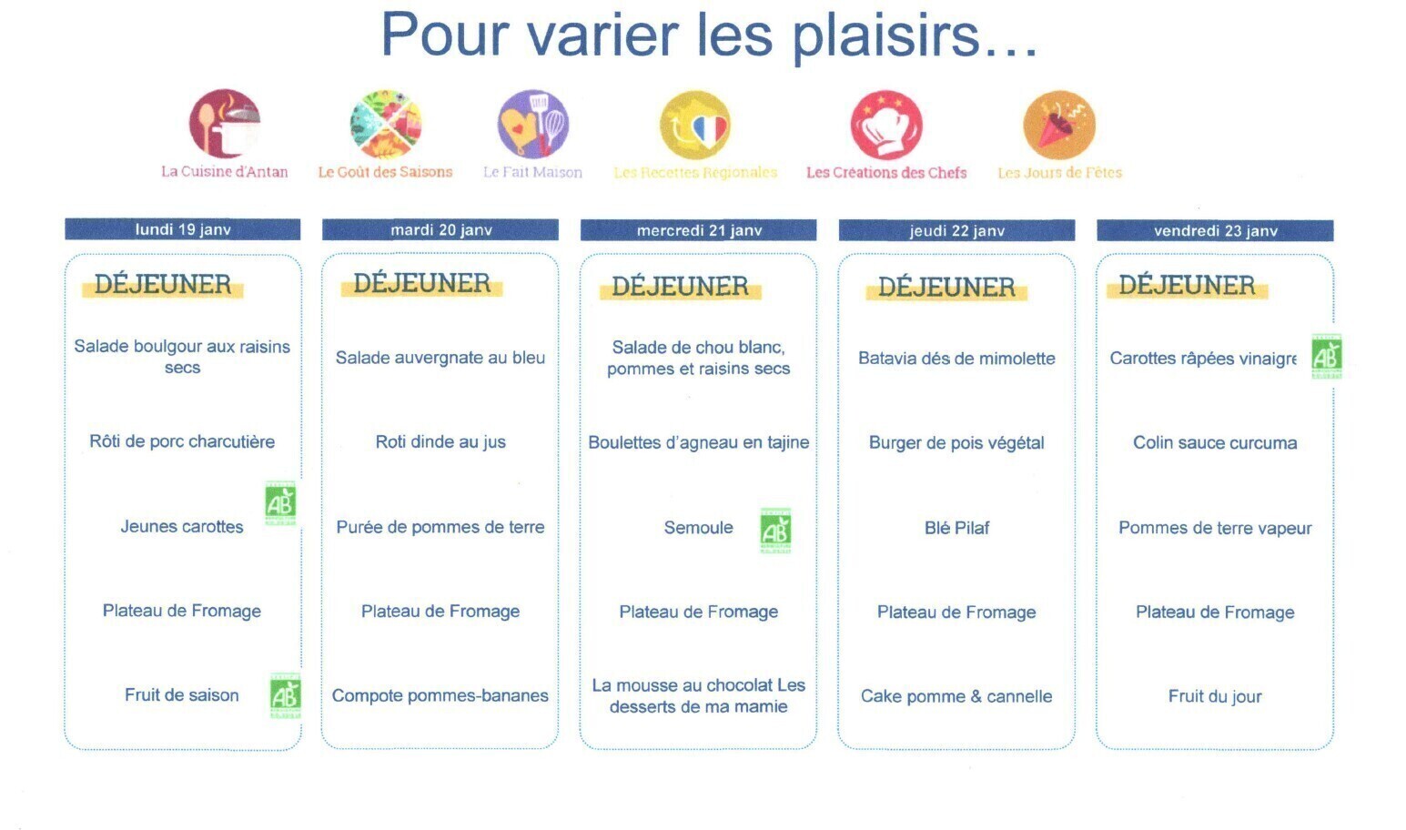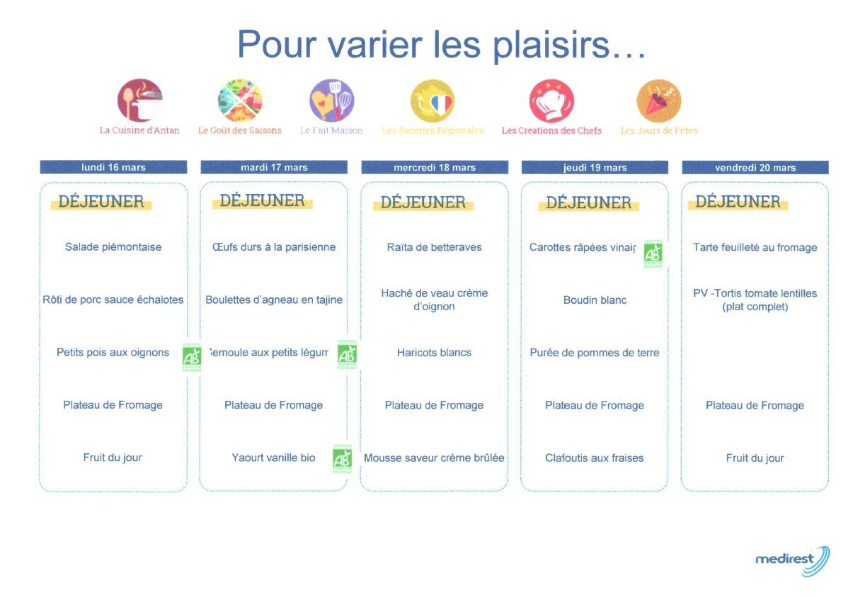 Retrouvez le menu de la semaine : ici.