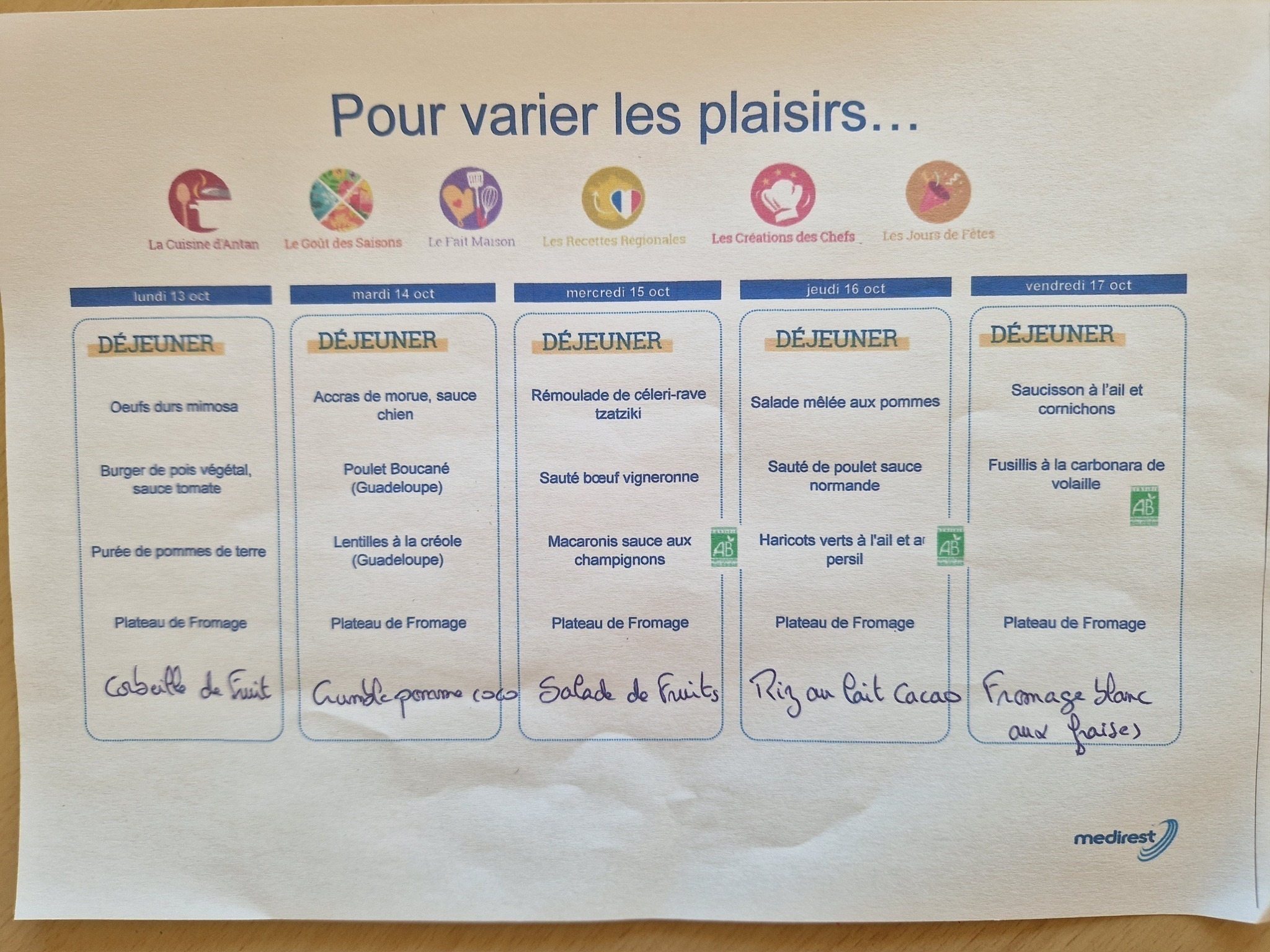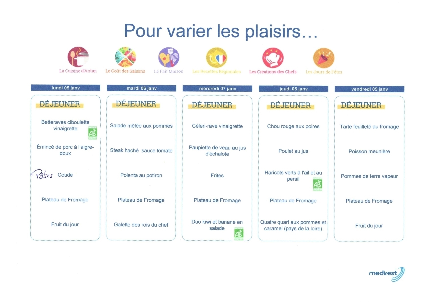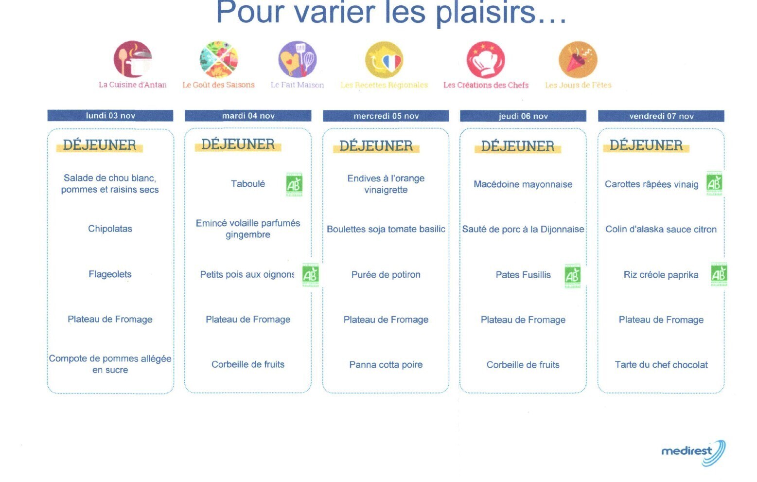Retrouvez le menu de la semaine : ici.